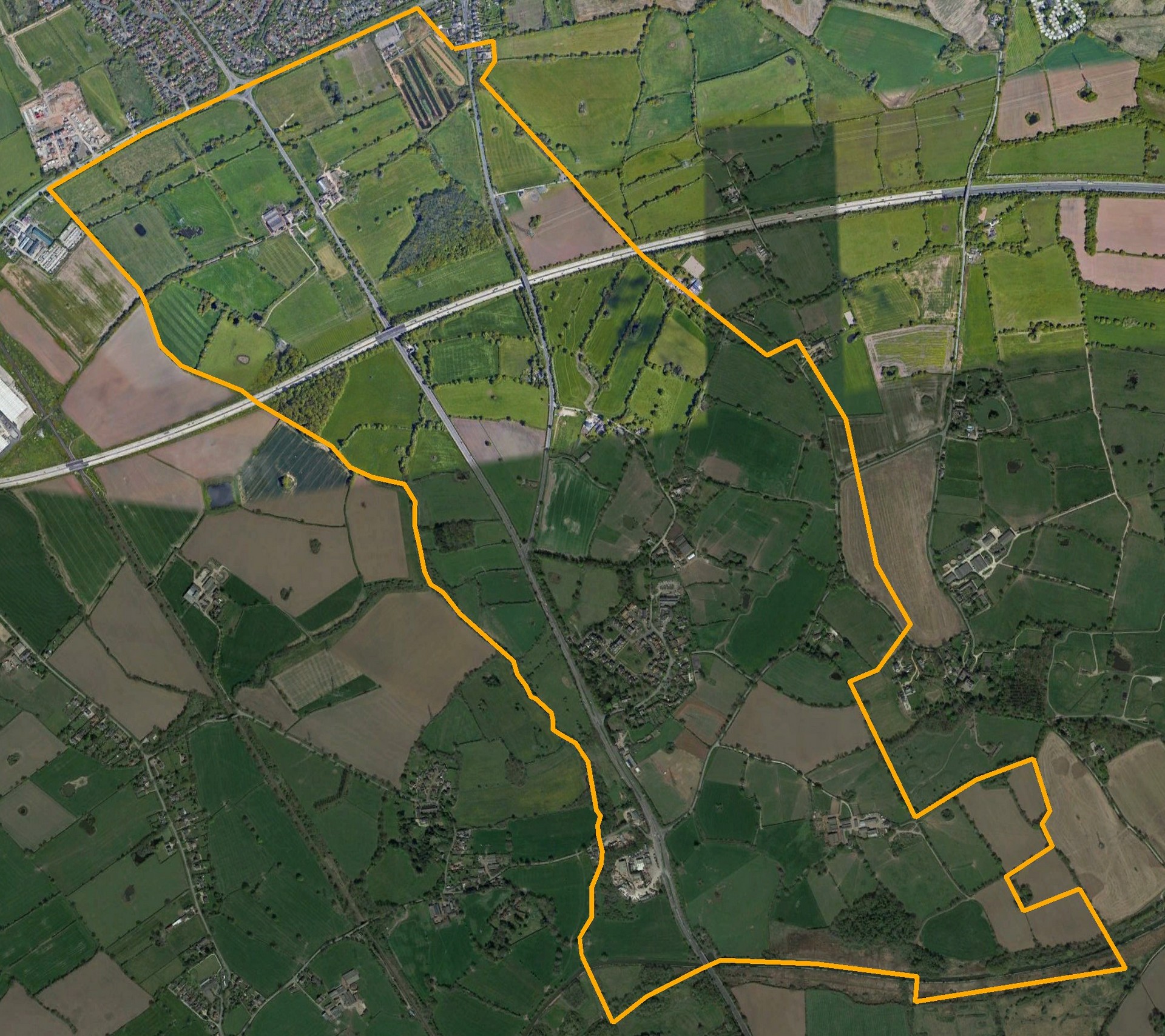 This is an area of farms and open land, which includes a smithy. Parish Reminiscences recalls the residents' memories of children walking to school, playing in the fields, sailing sticks in the brook, playing in the hay in the barns, chasing rabbits with dogs, and fishing for roach in local pits and the canal. Older residents who remember these glorious days regret the recent decline in the bird population. Unfortunately, there are now few moorhens, because ponds have been filled in; few lapwings because they can't nest on the ground, and for the same reason no skylarks. Yellowhammers are no longer to be seen in the hedgerows, and swifts no longer shriek overhead.