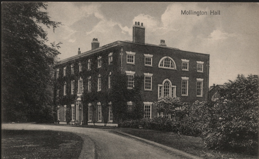 Mollington is the biggest of the parish townships. Before 1900, these were the acreages - Great Mollington 1069, Backford 764, Lea 697, Chorlton 544, Caughall 348. In 1900 Great and Little Mollington were joined for administrative purposes and together renamed Mollington, while the Crabwall Hall area was added in 1936. These two changes added an extra 204 acres to the township. Today Mollington has a population of 680 with 237 households.The two major houses, Mollington Hall and Mollington Banastre, and one just outside, Crabwall Hall, eventually succumbed to the shrinking demand for large country houses, due largely to difficulty in obtaining domestic staff.
